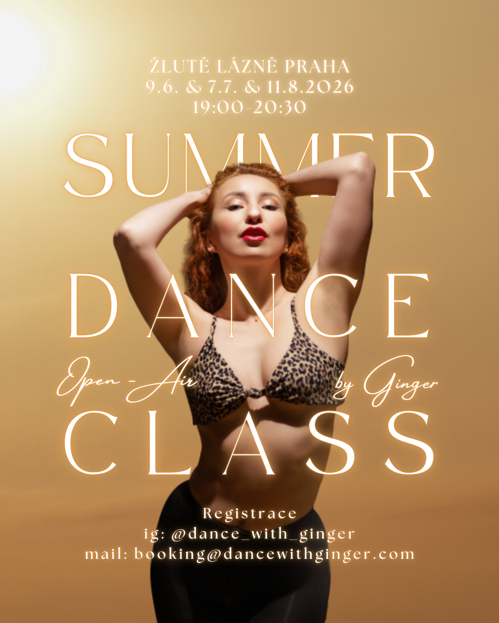 We invite you to exclusive summer open-air dance classes at Žluté Lázně with Ginger. Come enjoy warm evenings dancing at sunset, recharge with feminine energy, and feel sensual and confident like a true femme fatale.