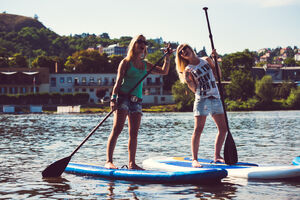 Žluté lázně nabízejí široký výběr sportovních, týmových a vodních aktivit, které mohou tvořit hlavní program akce nebo sloužit jako doplňková zábava pro hosty: beach volejbal, pingpong, badminton, streetball, pétanque moderní týmové a zábavné hry (cornhole, kanjam, Mölkky, spikeball aj.) paddleboardy, šlapadla, kajaky, megaboard