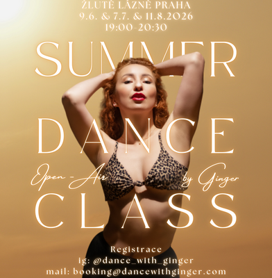 Zveme vás na exkluzivní letní open-air taneční lekce ve Žlutých Lázních s Ginger. Přijďte si užít horké večery tancem u západu slunce, nabít se ženskou energií a cítit se smyslně a sebevědomě jako femme fatale.