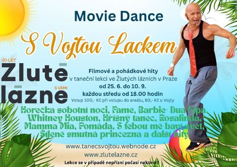Originální a velmi oblíbená taneční lekce sestavená z filmů a pohádek jako Fame, Barbie, Whitney Houston, Mamma Mia, Pomáda, Hříšný tanec, S tebou mě baví svět, Tři Oříšky pro Popelku, Sanitka, Svatba mého nejlepšího přítele, Co takhle svatba princi a další. Pojďte si zatančit na písničky, které velmi dobře všichni známe i na choreografie z jednotlivých filmů nebo pohádek. Lekce je upravená tak, aby taneční kroky zvládl i úplný začátečník. Během lekce spálíte přebytečné kalorie a ještě si k tomu s Vojtou zazpíváte. Tanec s Vojtou dělá božská těla.
