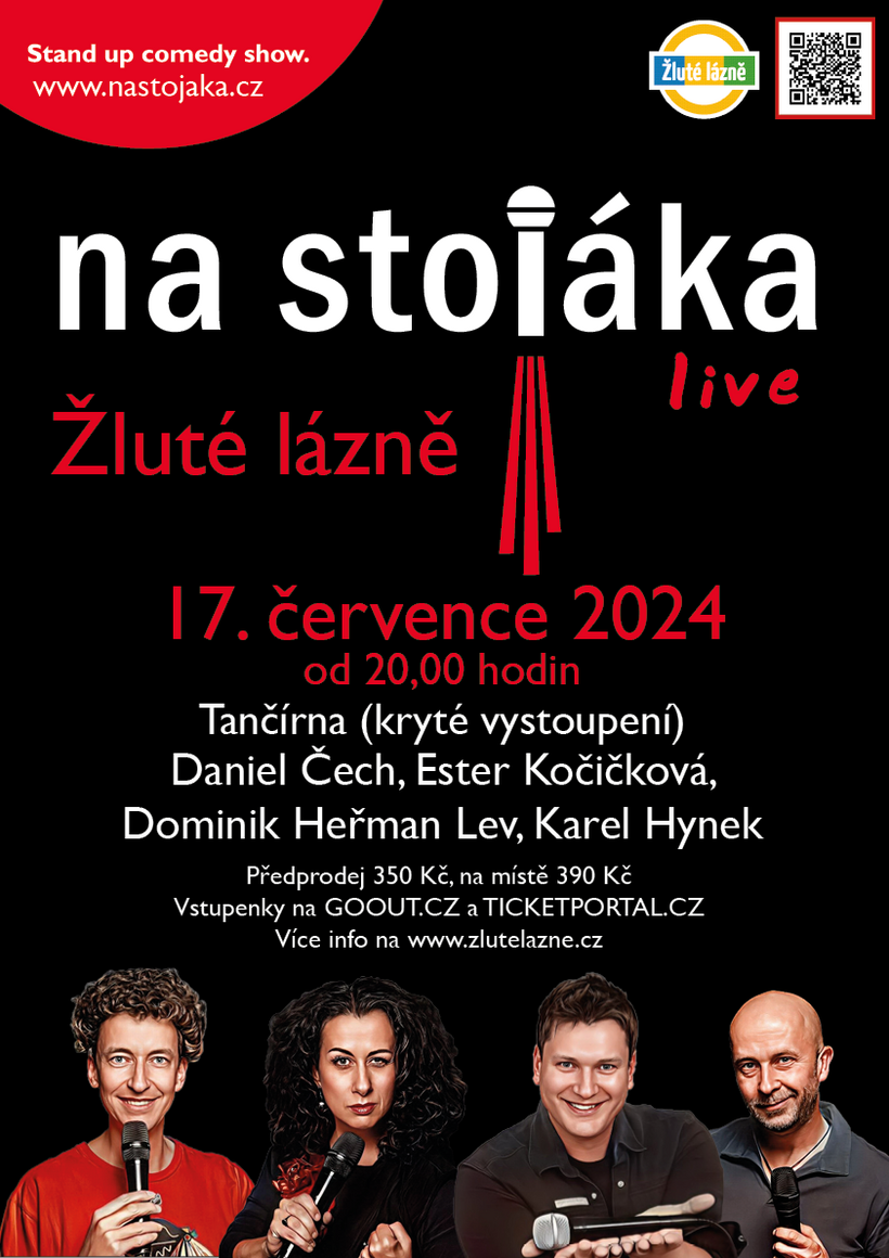 Proč se v Žlutých lázních nikdy neřeší vážné věci? Protože tam je smích vždy na pořadu dne a smích je nejlepší lék na všechno vážné! Doražte se vyléčit ze všech chorob a to smícheme. Léčit bude Daniela Čecha, Ester Kočičková, Dominik Heřman Lev a Karel Hynek! Začínáme od 20:00 hodin!